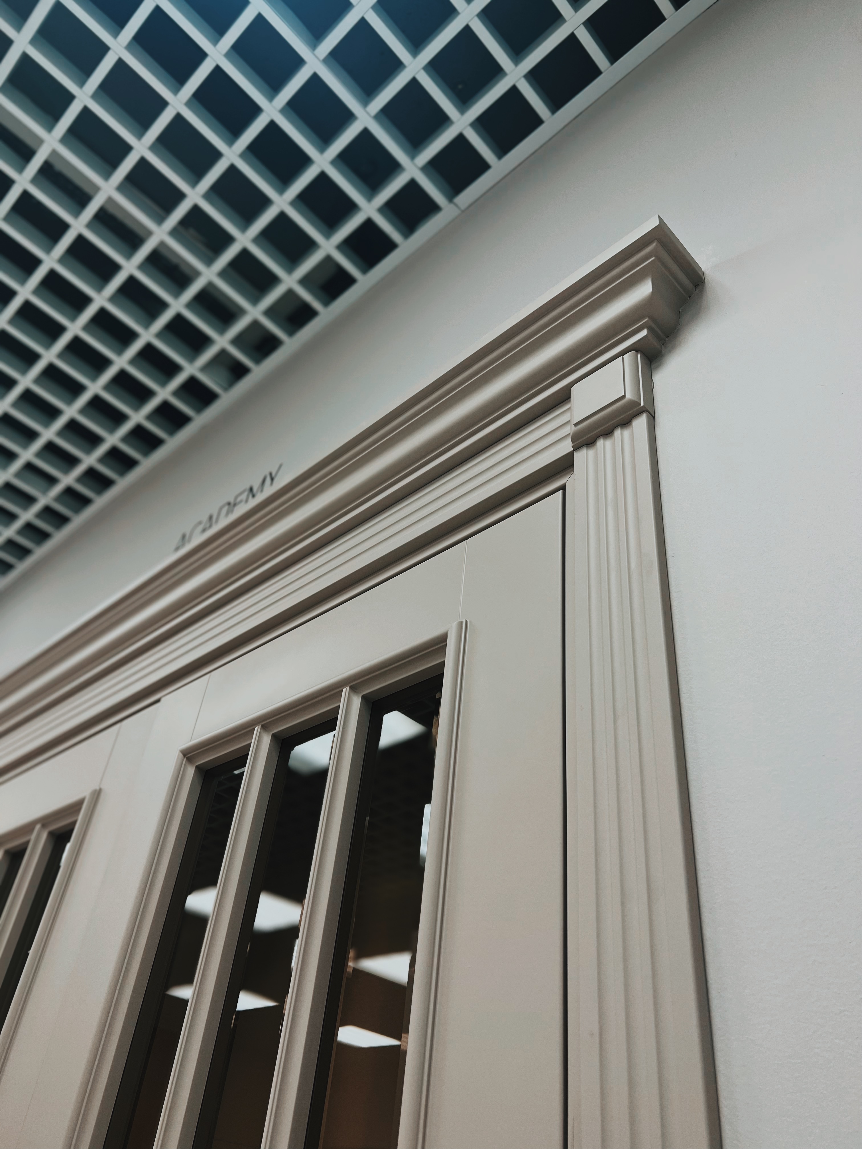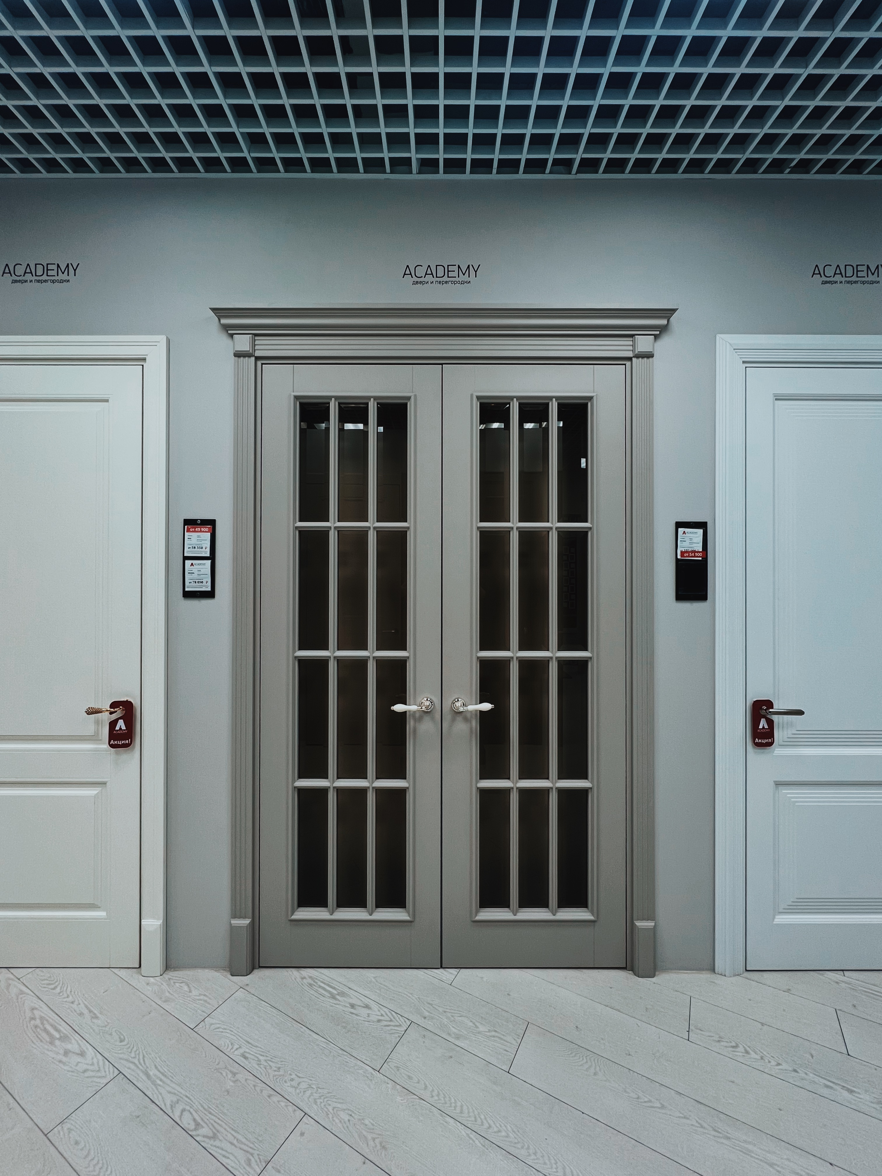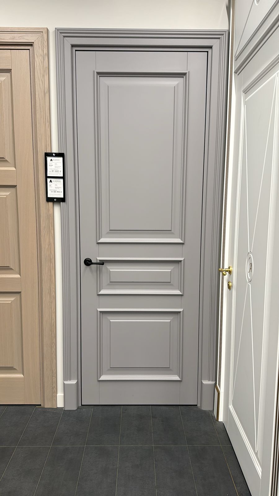 Полотно тамбуратное из инженерного массива (МДФ + ламельный/листельный массив лиственных пород) толщиной 50 мм. с повышенной шумоизоляцией,окра шенное матовыми красками итальянского производства SIRCA с эффектом «soft touch» по шкале RAL с возможностью двусторонней окраски. Объемные филенки, стекла крепятся к полотну с помощью фигурных штапиков (багетов).