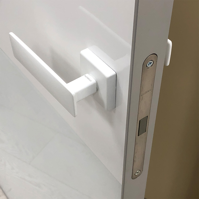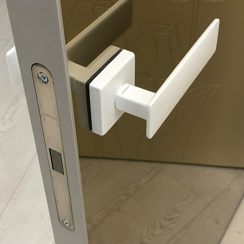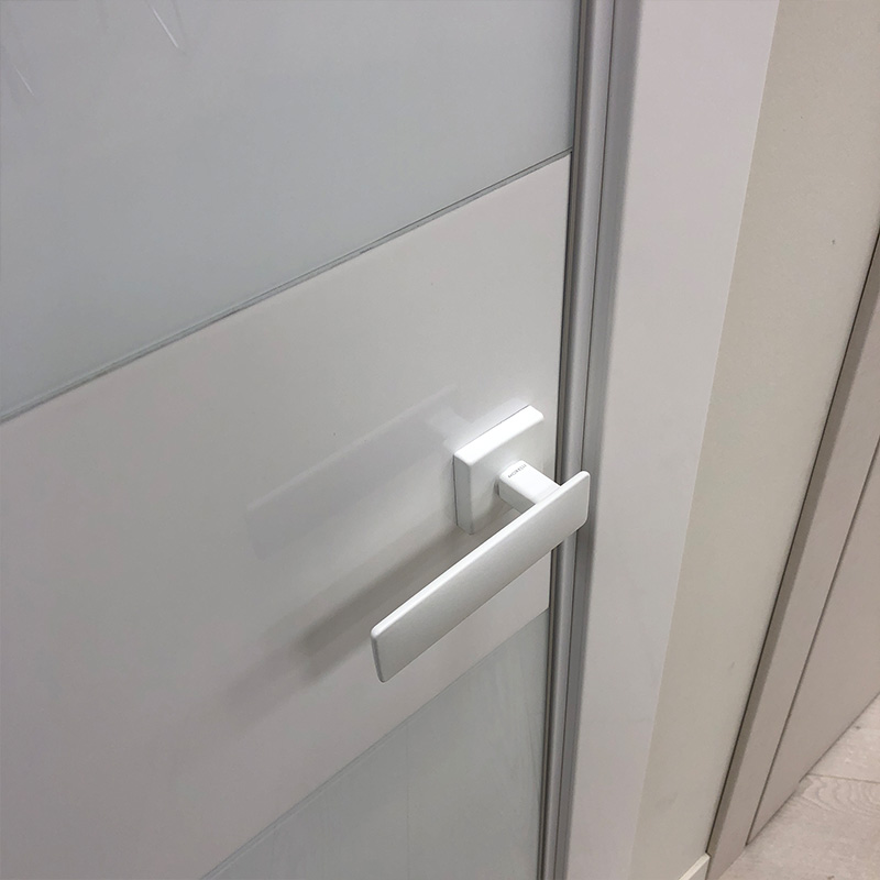 Материалы для изготовления хайтековой двери – металл после шлифования, пластик и стекло. Применяемая фурнитура – блестящая и, желательно,