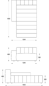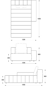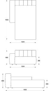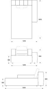 • Лежанка с подлокотником левая 1250х1850хН680