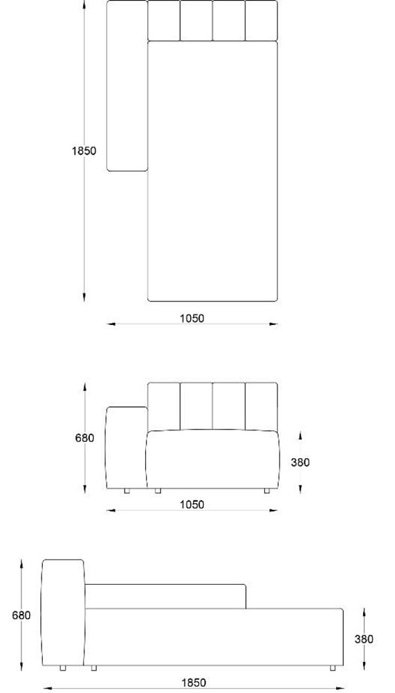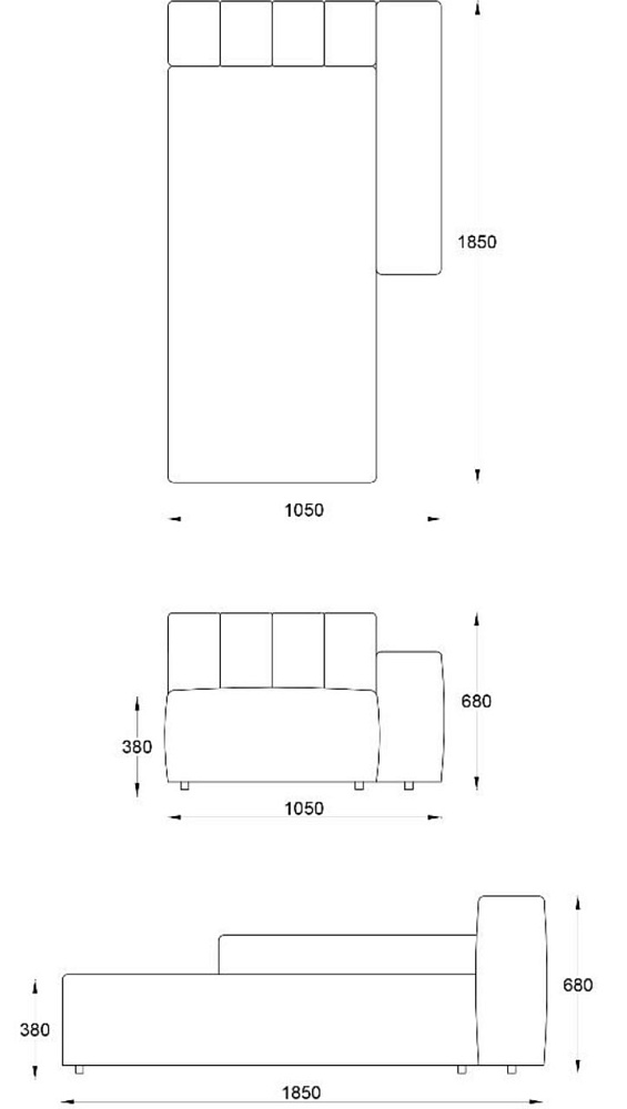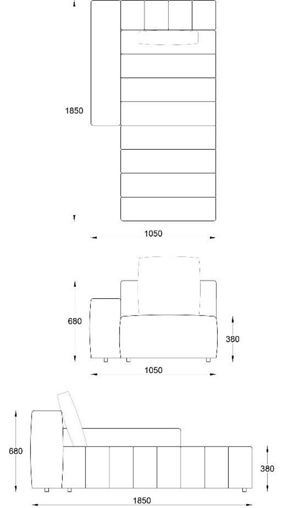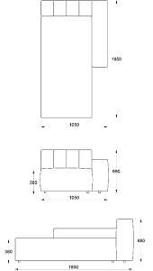 • Лежанка с подлокотником левая 1050х1850хН680