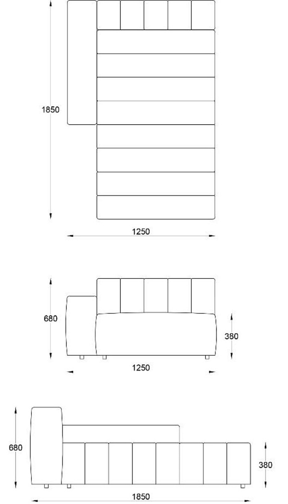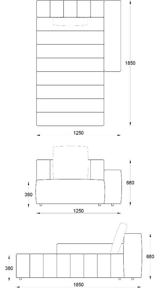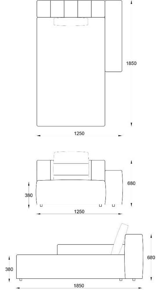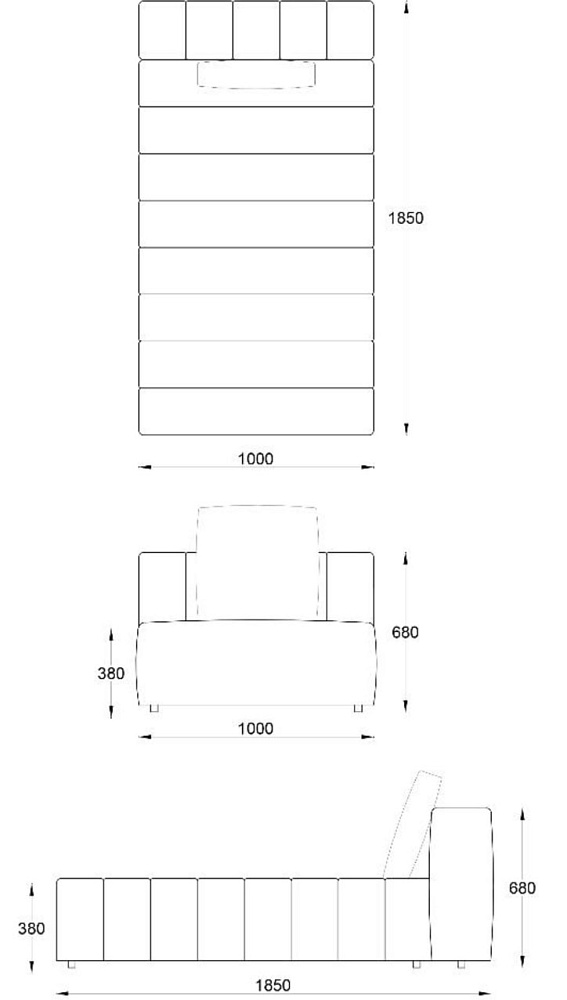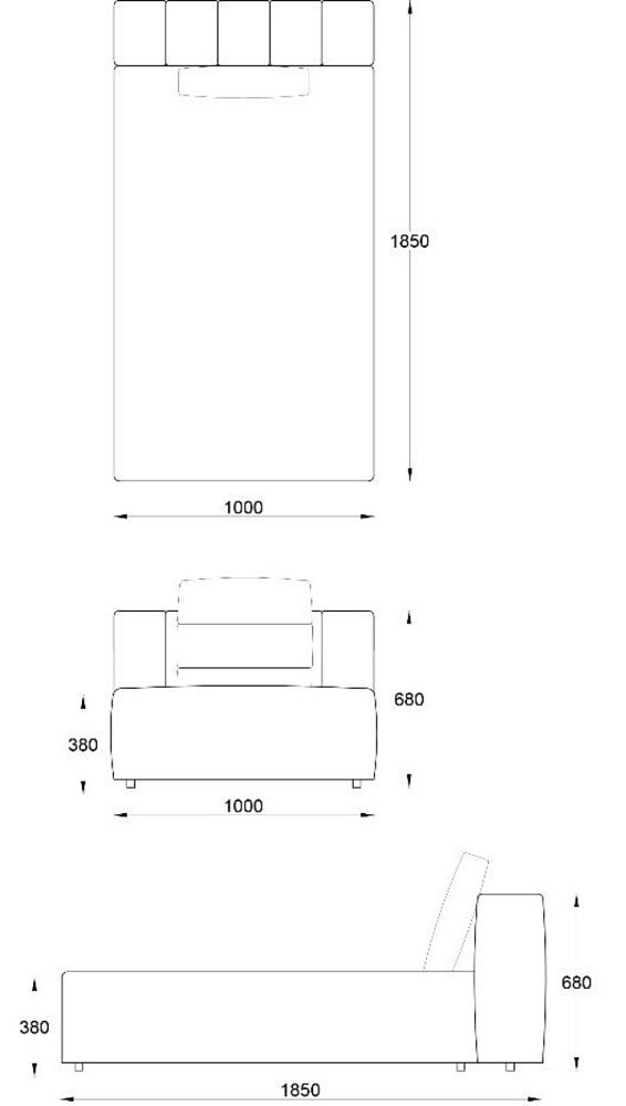 • Лежанка без подлокотника без отстрочки 1000х1850хН680