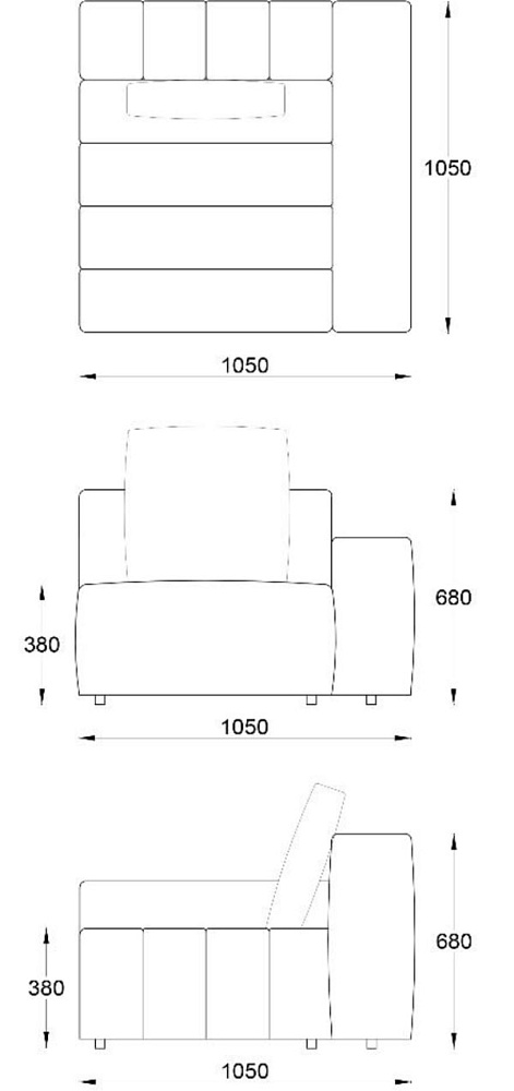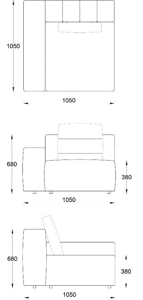 • Лежанка с подлокотником правая 1050х1850хН680