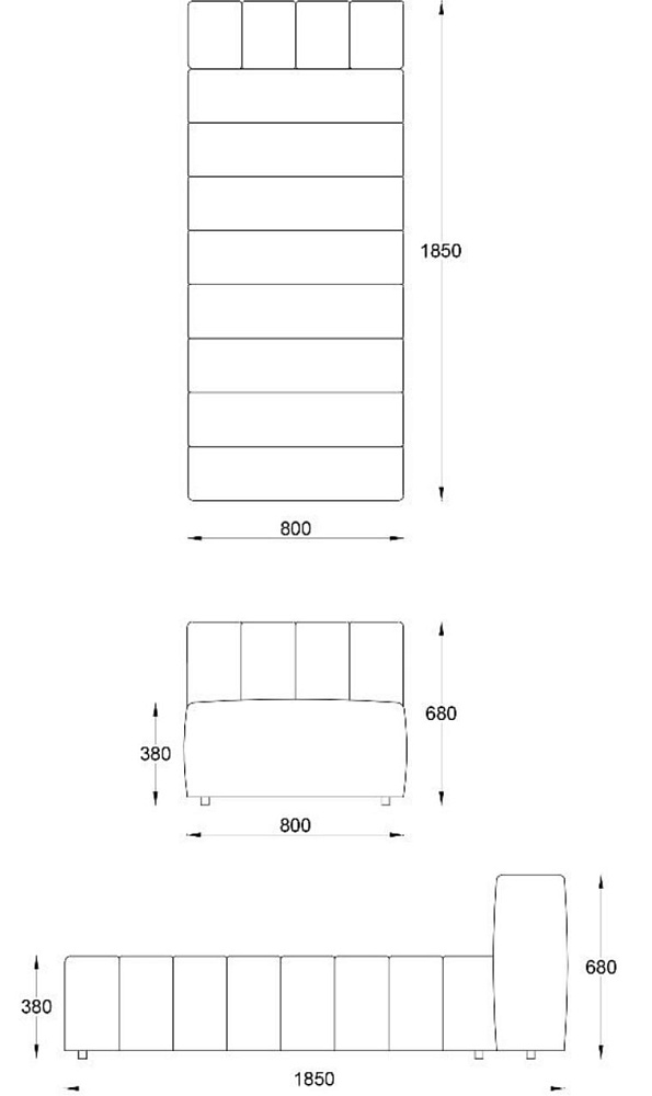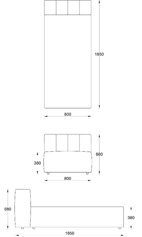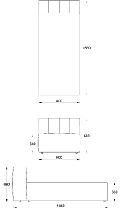 • Лежанка без подлокотника без отстрочки 800х1850хН680