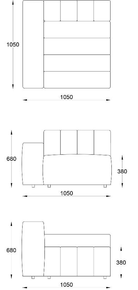• Угловой модуль левый с отстрочкой 1050х1050хН680