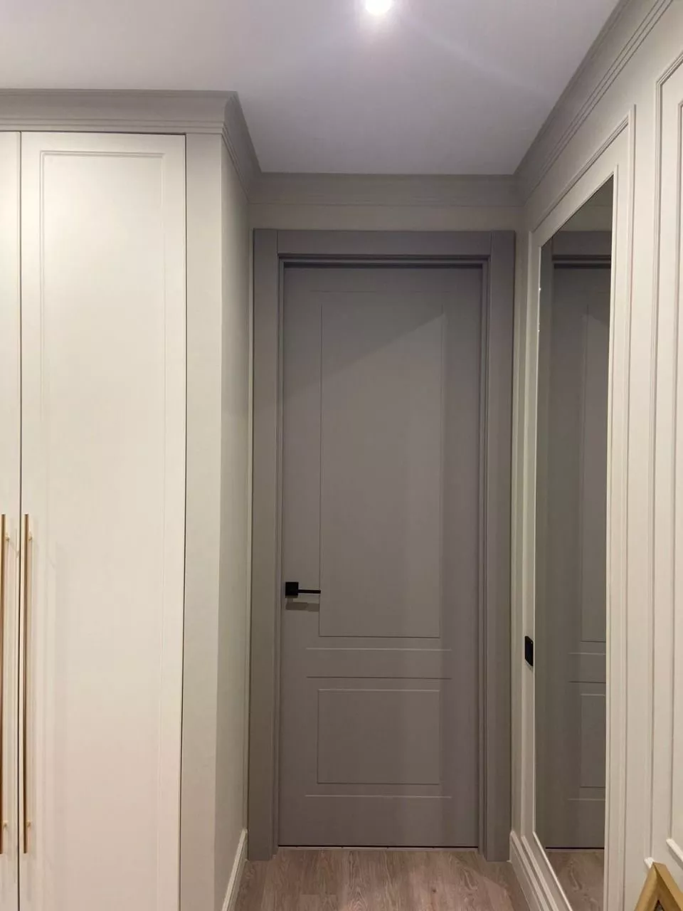 • Минимализм: Гладкие двери без рисунков или с небольшими вертикальными либо горизонтальными рисунками, молдингами.