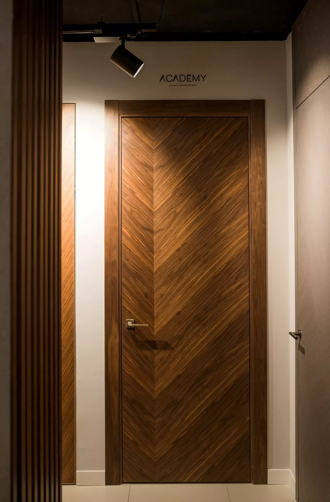 Если вы выбираете шпонированные двери, обратите внимание на качество шпона, наполнение и толщину полотна – это даст гарантии долговечности двери на долгие годы. Коллекции Academy изготавливаются под заказ, по индивидуальным дизайн проектам и размерам. Подобрать оптимальный вариант, рисунок, цвет и комплектацию помогут консультанты сети – в любом из шоурумов или в режиме «онлайн».